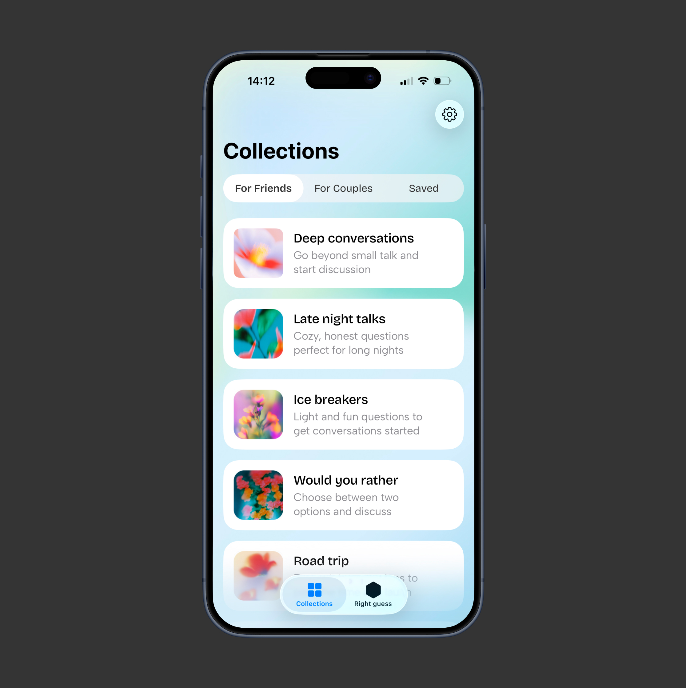 Collections concept: users answer questions, getting insights about their friends or partner