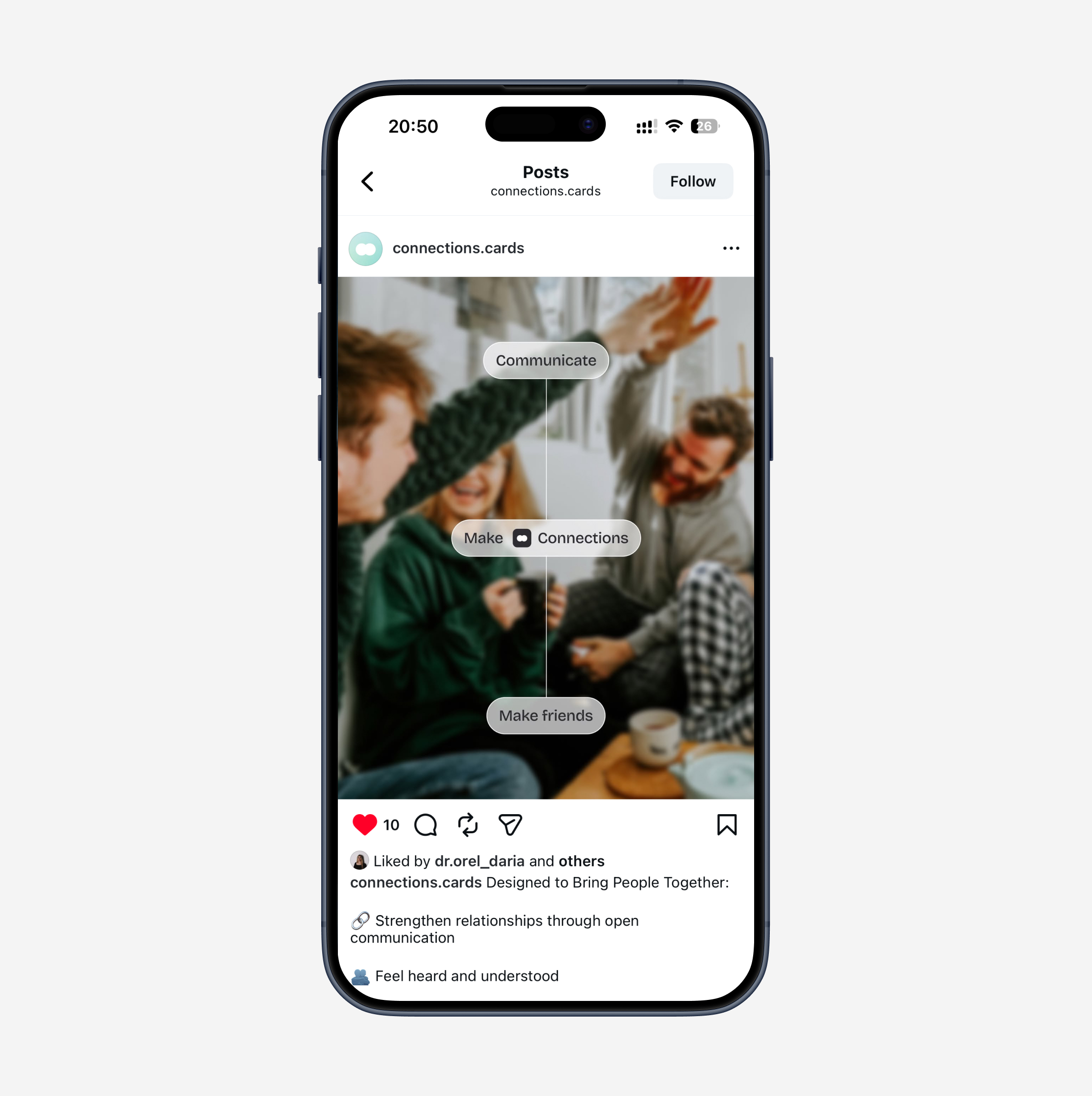 Designed content to highlight real user interactions and a sense of community within the app. Created engaging, branded visuals that show users connecting, sharing, and building relationships through the Connections – Get closer