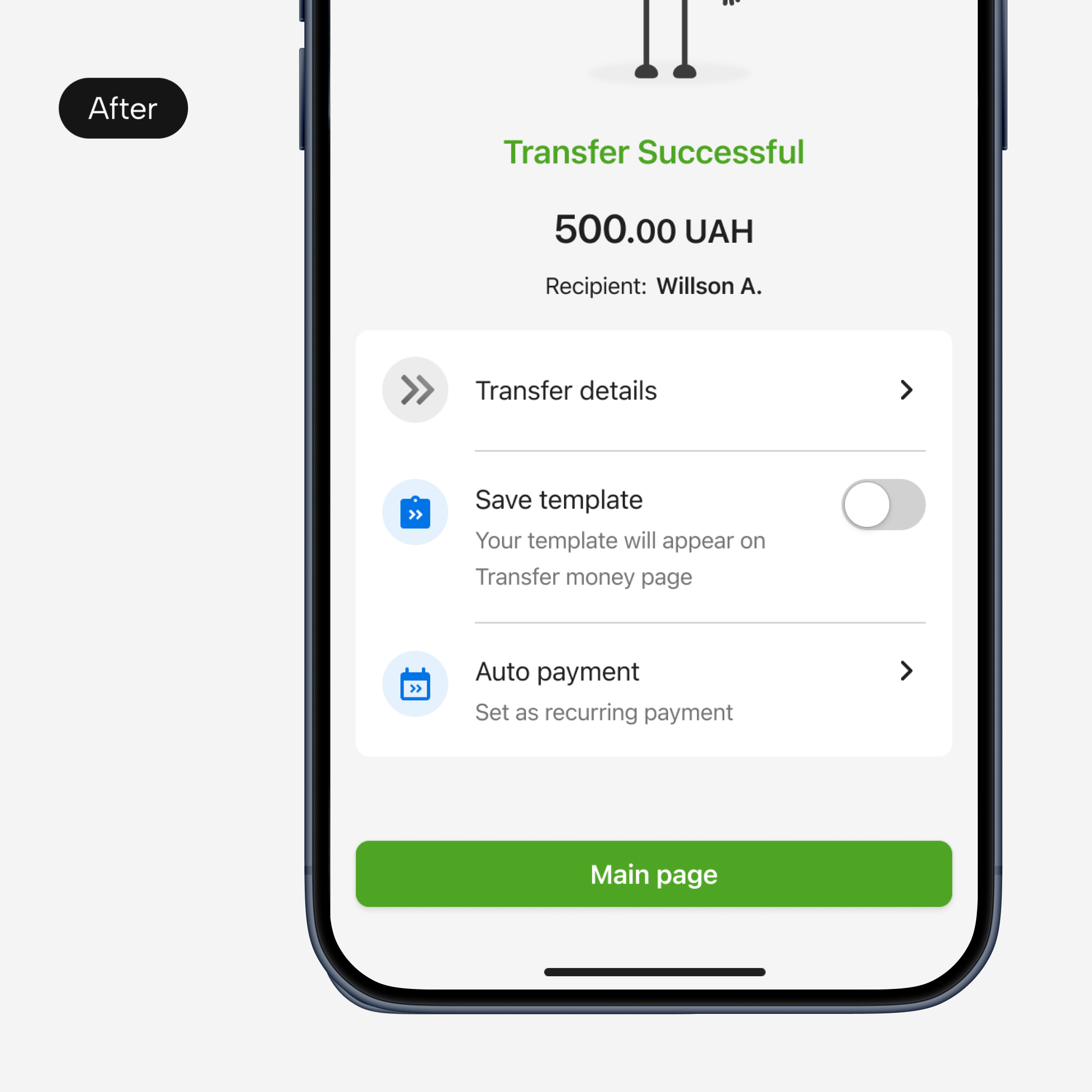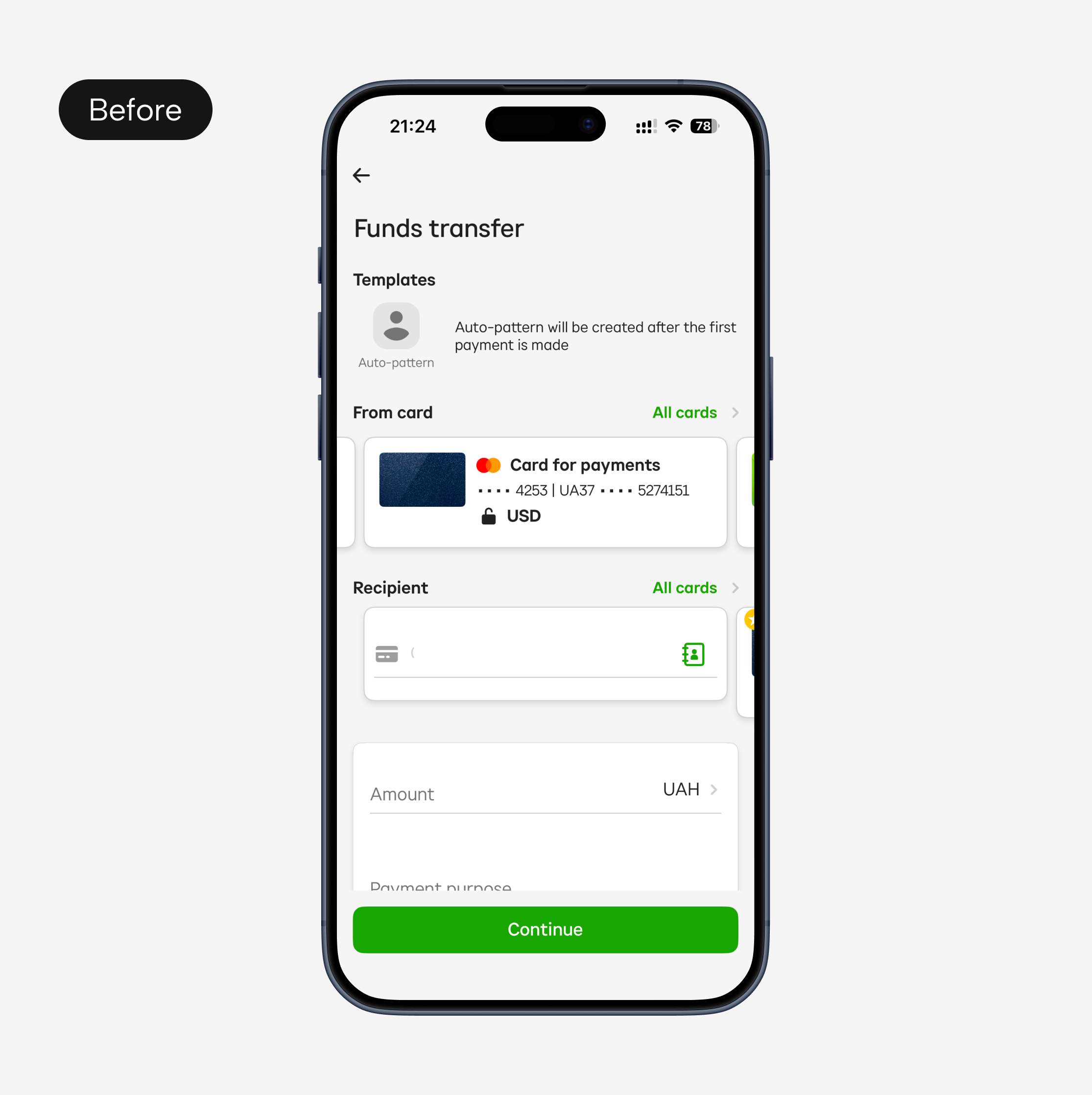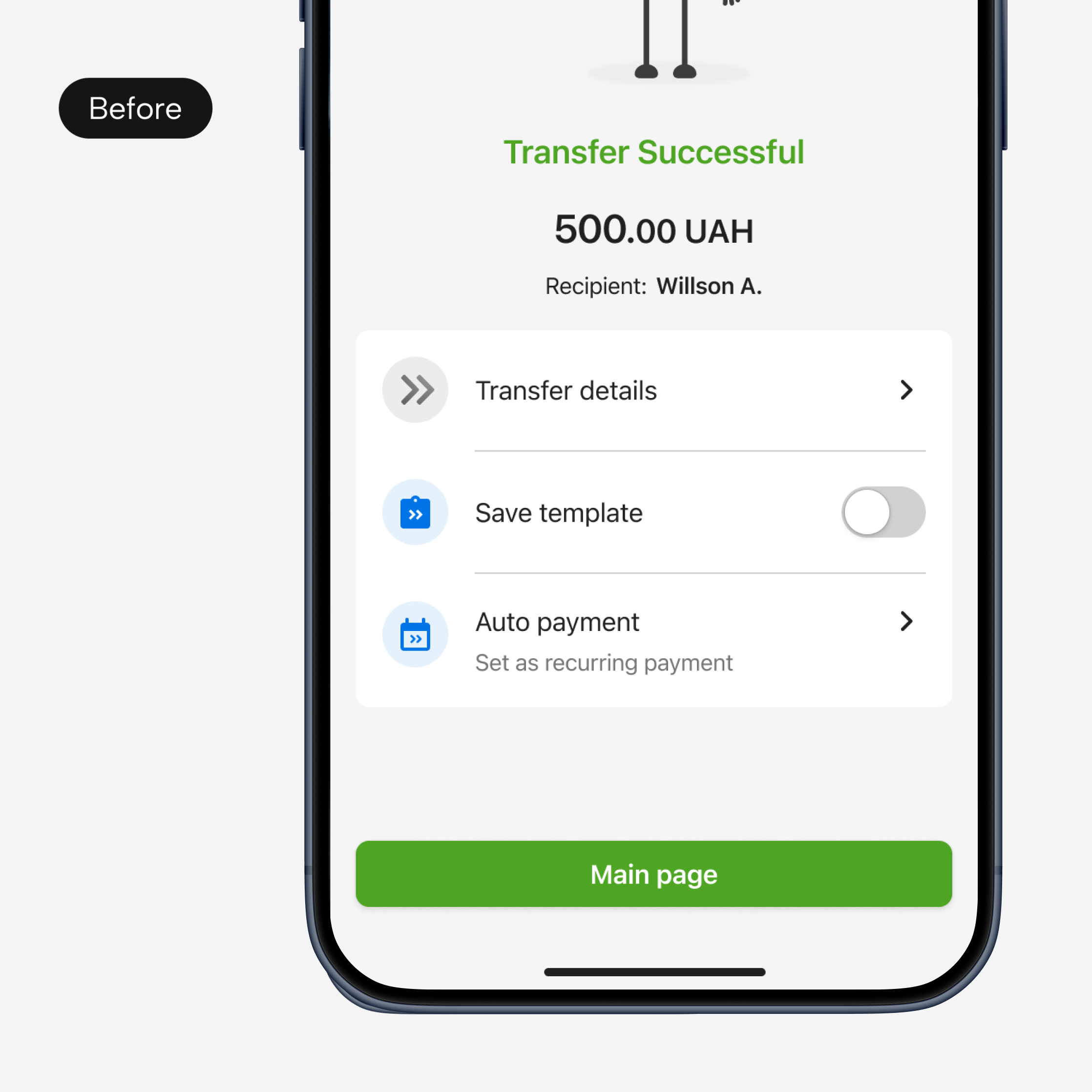 The redesign of PrivatBank’s Funds Transfer service aimed to make sending money faster, safer, and more intuitive. It focused on expanding transfer options, improving templates, reducing errors and modernizing the interface to improve usability and build user trust