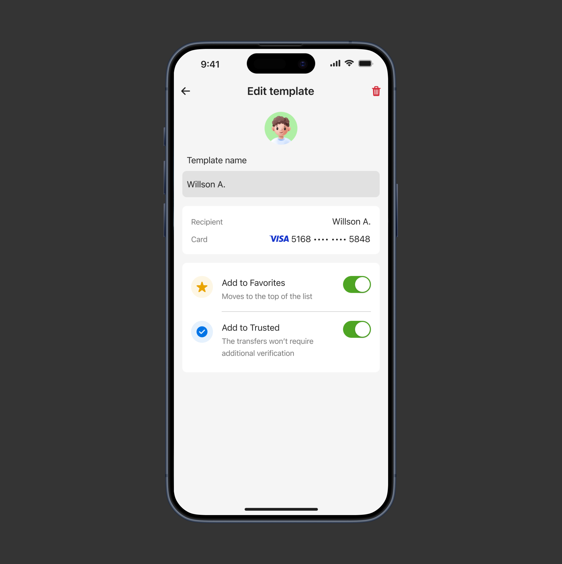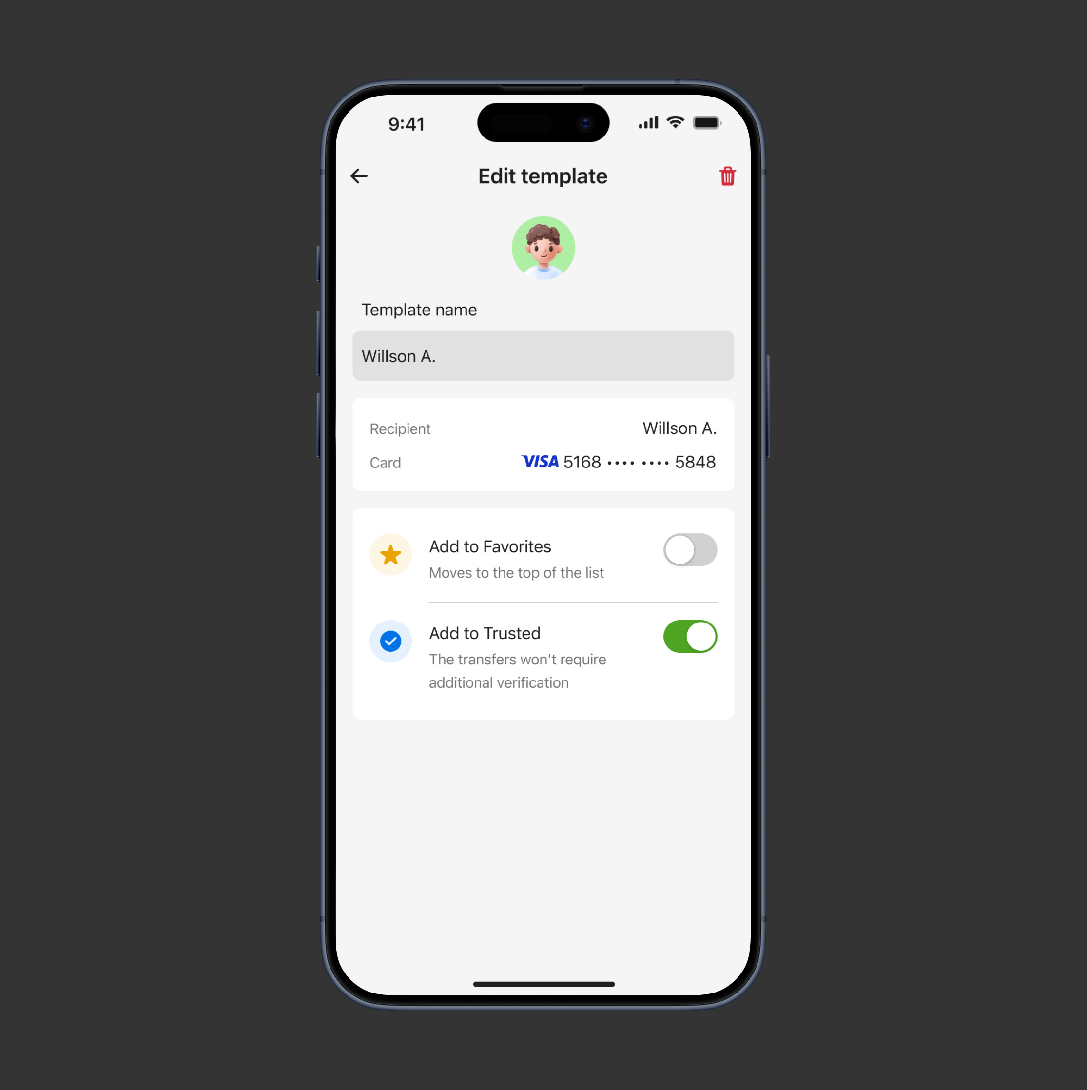 Allowed users to decide whether a transfer should be saved as a template, allowed users to customize templates by marking frequently used templates as favorites